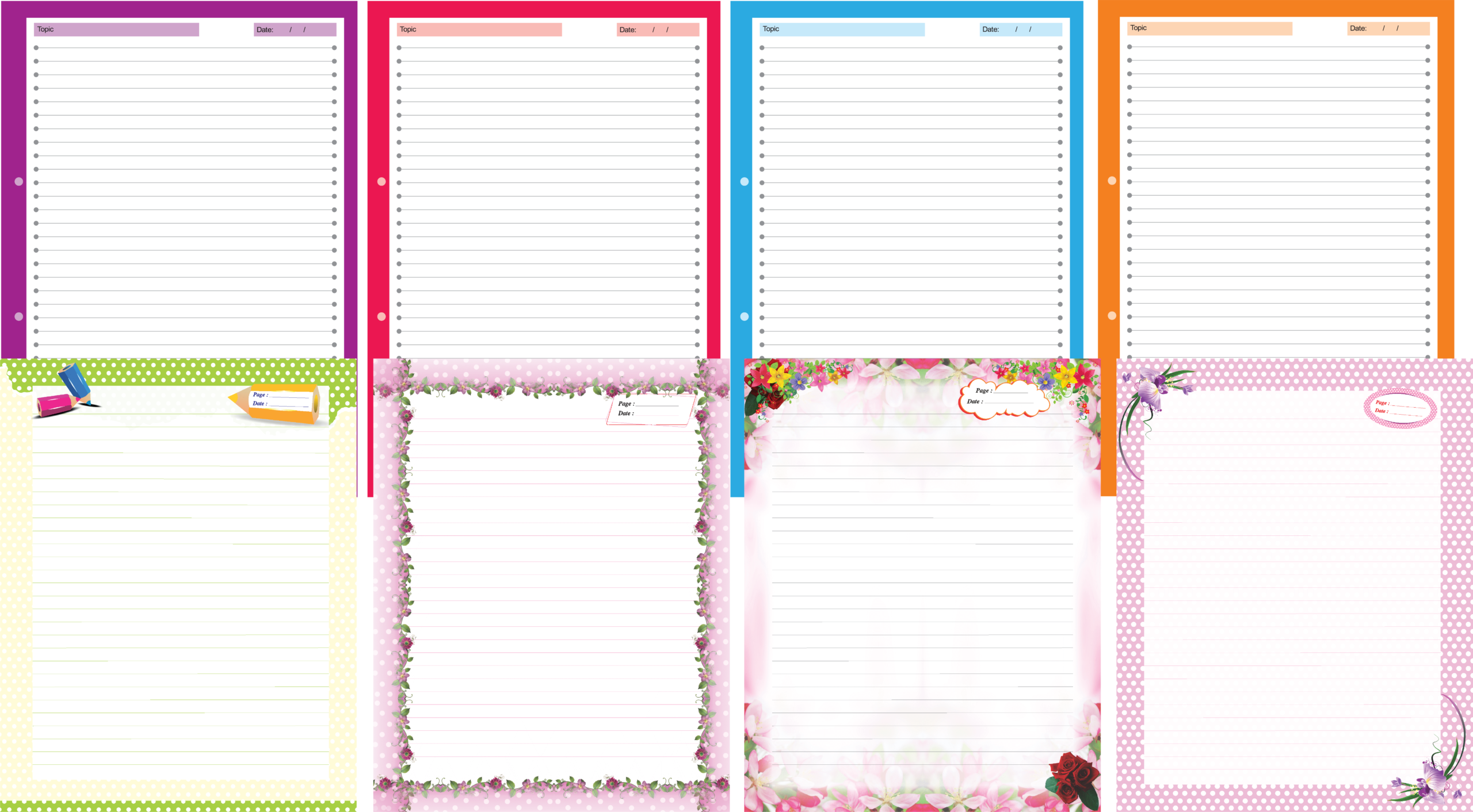 • Different color pages for easy organization